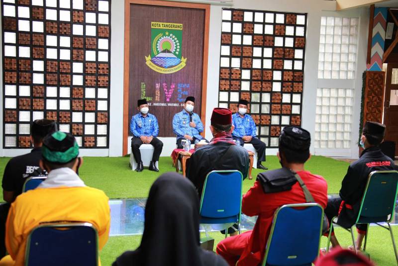 Wali Kota Tangerang H. Arief R Wismansyah didampingi Wakilnya H. Sachrudin berkesempatan hadir pada acara pemberian bantuan prasarana latihan kepada 6 Perguruan Silat yang berada di Kota Tangerang, yang diselenggarakan di Pendopo Wali Kota Tangerang, Kamis (17/12/2020).