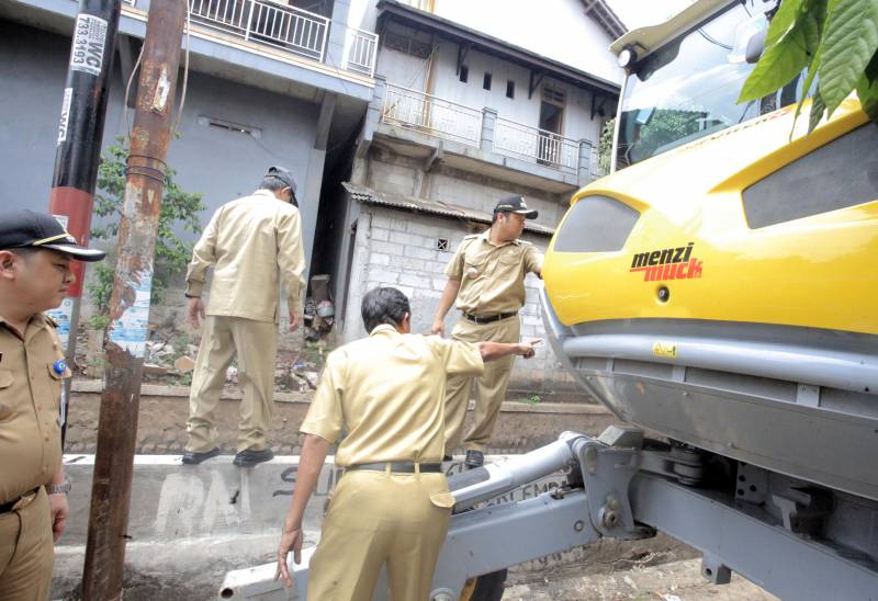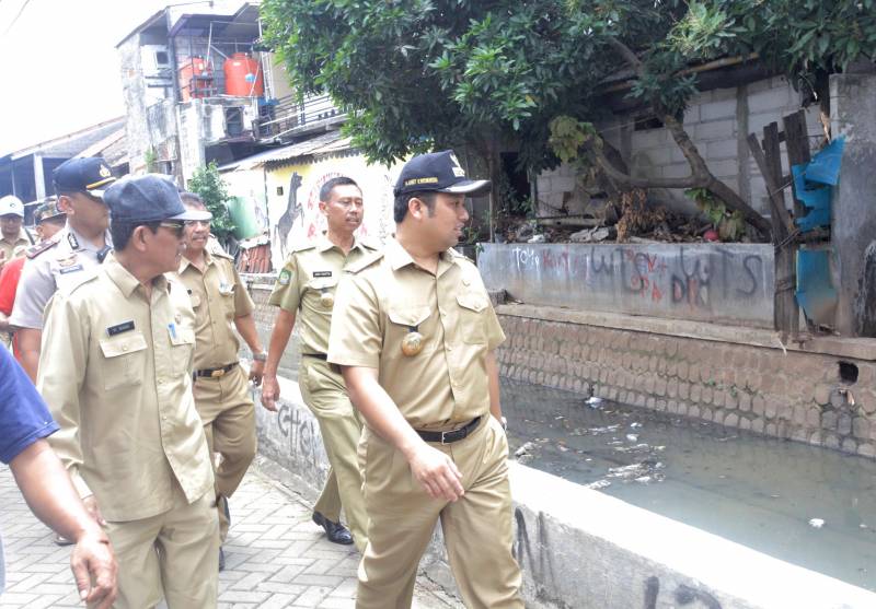 Selepas dari wilayah Larangan, Wali Kota selanjutnya menuju daerah Lembang Ciledug untuk meninjau pengerukan lumpur di Kali Irigasi Lembang.