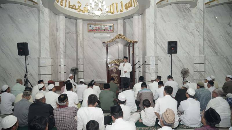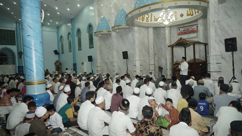 "Bulan Ramadhan harus bisa jadi momentum untuk kita buat nambah iman dan taqwa." Ujar Wali Kota ketika memberi sambutan pada acara shalat taraweh di Masjid Raya Ar Royan, Cibodas, Jumat (26/5).