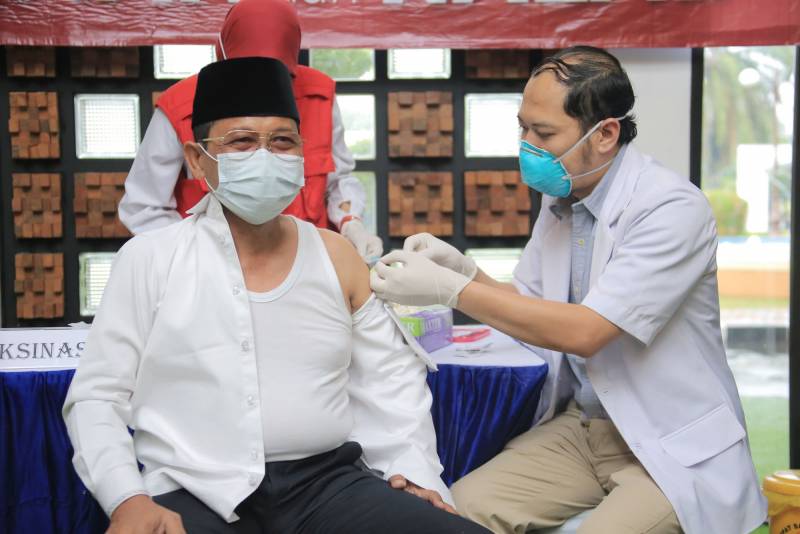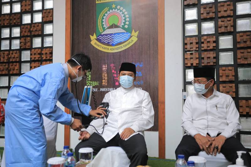 Wali Kota Tangerang H. Arief R. Wismansyah menjalani vaksinasi kedua Covid-19 oleh Dinas Kesehatan Kota Tangerang yang berlangsung di Pusat Pemerintahan Kota Tangerang, Jumat (29/1).
