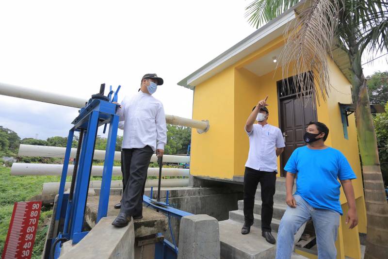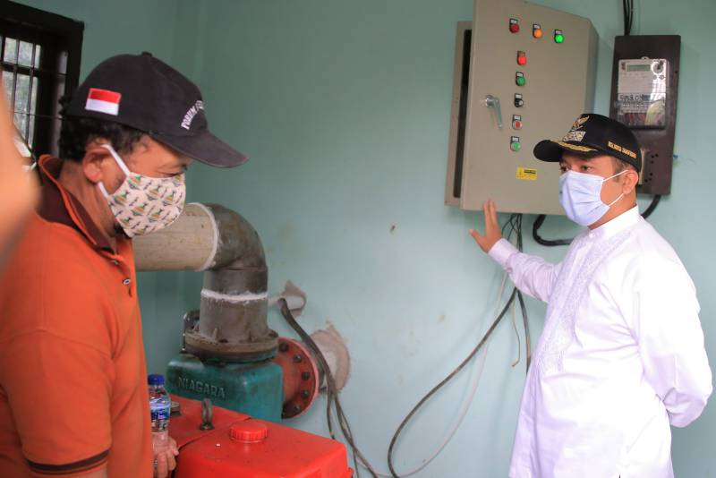 Wali Kota Tangerang H. Arief R. Wismansyah didampingi kepala Dinas Pekerjaan Umum dan Penataan Ruang (PUPR) Decky Priambodo meninjau langsung rumah pompa di wilayah RW. 06 Perumahan Ciledug Indah, Karang Tengah, Jumat (19/2).