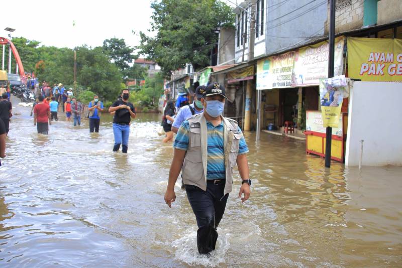 Wali Kota Tangerang H. Arief R. Wismansyah masih terus menyusuri titik-titik banjir di wilayah Kota Tangerang pada hari Minggu, (21/2).