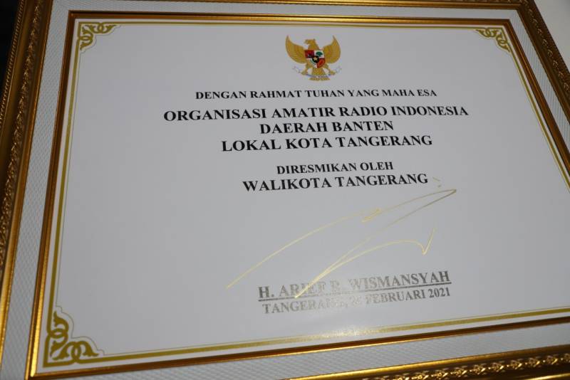 Dalam peresmian tersebut turut dilakukan penandatanganan Piagam Peresmian ORARI Daerah Banten Lokal Kota Tangerang oleh Walikota Tangerang.