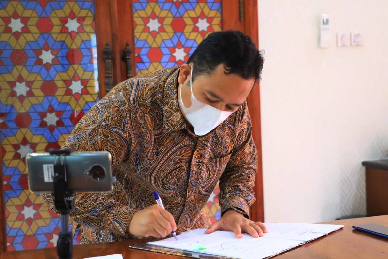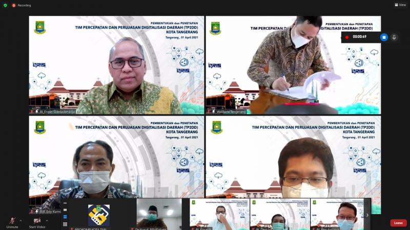 Wali Kota Tangerang H. Arief R. Wismansyah Tandatangani pembentukan Tim Percepatan dan Perluasan Digitalisasi Daerah (TP2DD) Kota Tangerang secara virtual pada, Kamis (1/4/21).