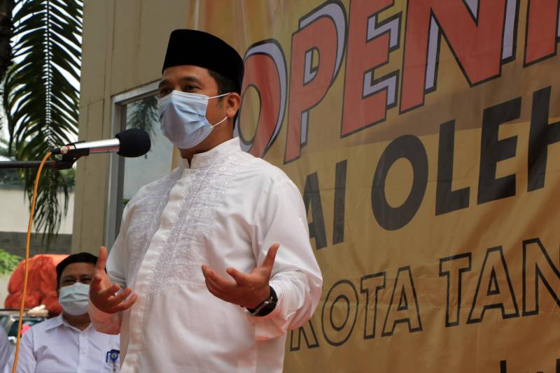 Wali Kota Tangerang H. Arief R. Wismansyah meresmikan Sentra Oleh - Oleh Kota Tangerang yang berlokasi di Rest Area Km. 14 Tol Merak - Jakarta, Pinang, Jumat (9/4).