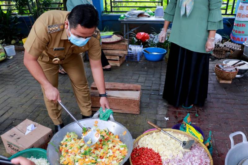 Dalam tinjauannya, Wali Kota menyampaikan bahwa di tengah pandemi Covid-19 yang masih melanda masyarakat banyak yang membuat dapur umum di tingkat RT dan RW untuk membantu warga yang sedang melakukan isolasi mandiri.