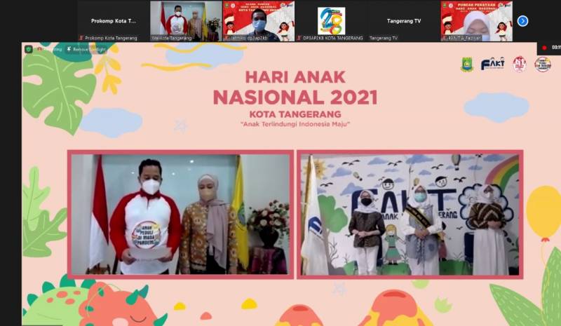 Pemerintah Kota Tangerang melalui Dinas Pemberdayaan Perempuan, Perlindungan Anak, Pengendalian Penduduk Dan Keluarga Berencana (DP3AP2KB) menggelar Perayaan Puncak Hari Anak Nasional Kota Tangerang 2021, yang diselenggarakan secara virtual bersama dengan anak-anak Kota Tangerang, Kamis (5/8).