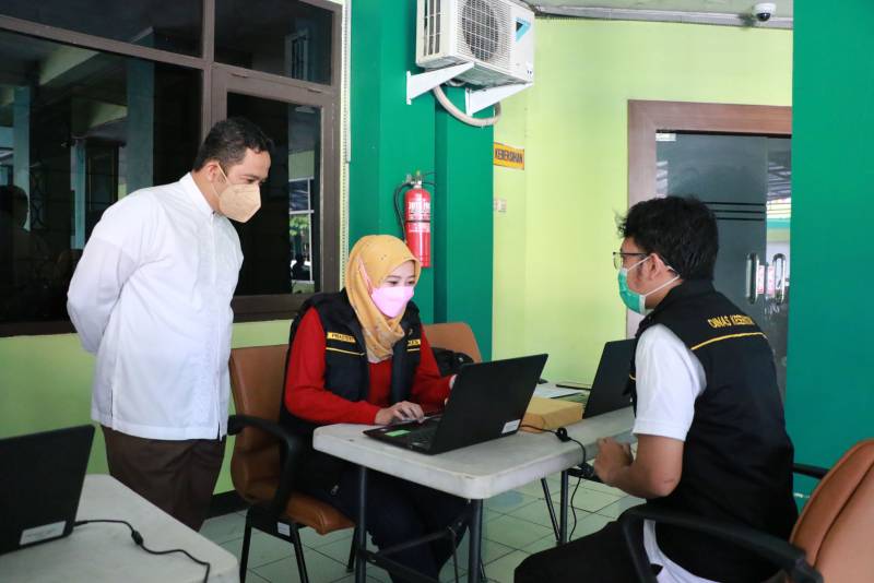 Wali Kota Tangerang H. Arief R. Wismansyah tinjau langsung pelaksanaan vaksinasi dosis ketiga bagi tenaga kesehatan yang berlangsung di Kantor Dinas Kesehatan Kota Tangerang, Sabtu (7/8/21).
