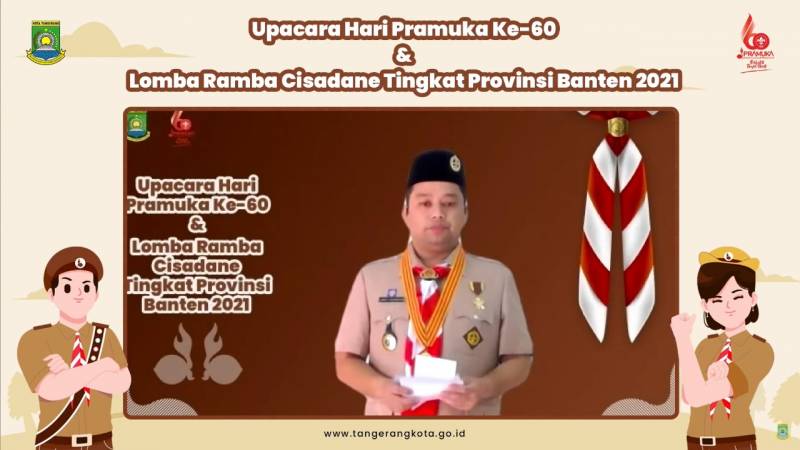 Wali Kota Tangerang H. Arief R. Wismansyah memimpin upacara Hari Pramuka ke-60 tingkat Kota Tangerang sekaligus membuka kegiatan Lomba Ramba Cisadane Tingkat Provinsi Banten 2021 yang digelar secara daring, Sabtu (14/8).