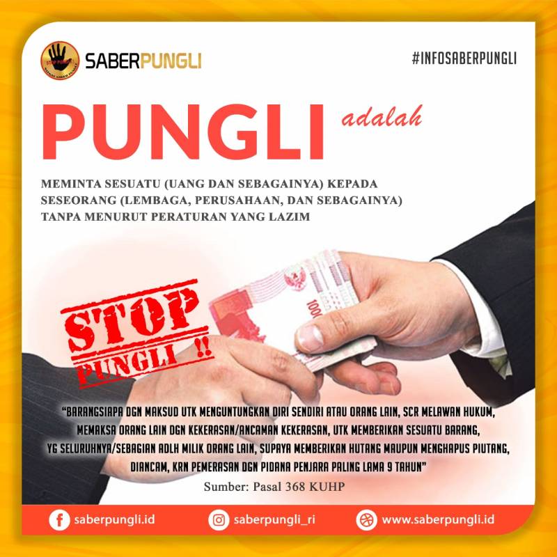 “Untuk memaksimalkan penegakan Saber pungli, diharapkan masyarakat dapat ikut serta mengawal segala jenis tindakan yang mengindikasi adanya pungli di dalamnya. Banyak sekali media pengaduan yang dapat digunakan, mulai dari aplikasi Tangerang LIVE hingga media chatting whatsapp di nomor 0811 1500 293”, jelasnya.
