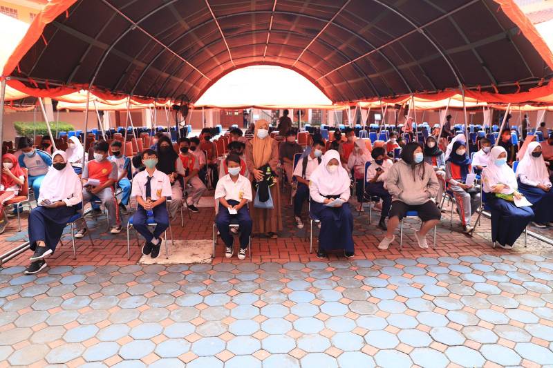 “Kategori remaja ini, merupakan sasaran pada range umur 12 hingga 17 tahun. Saat ini, capaian vaksinasi kategori remaja diangka 30 persen dari target sasaran 178.803 remaja. Semoga, dengan menggelar vaksinasi massal pelajar seperti ini, target kategori remaja bisa segera tercapai,” harap dr Dini.