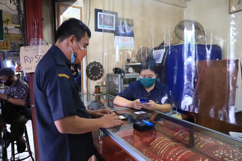 “Pada sistem ini, pedagang bisa membayar menggunakan m-banking dari seluruh bank, juga bisa menggunakan OVO, Gopay, Dana atau lainnya. Tanpa potongan biaya transaksi, sesuai aturan pertokoan emas retribusinya Rp10 ribu sedangkan lainnya hanya Rp6 ribu. Dikelola untuk biaya kemananan, kebersihan dan ketertiban,” papar Titien.