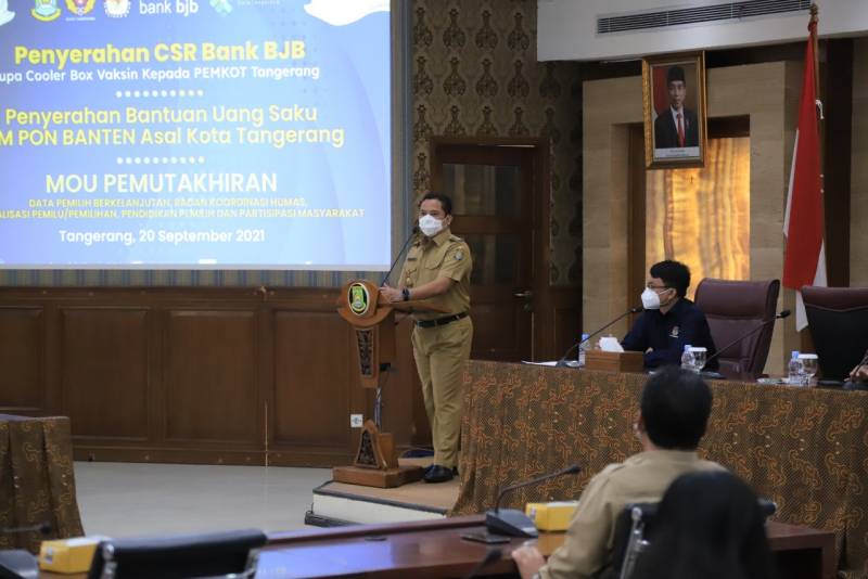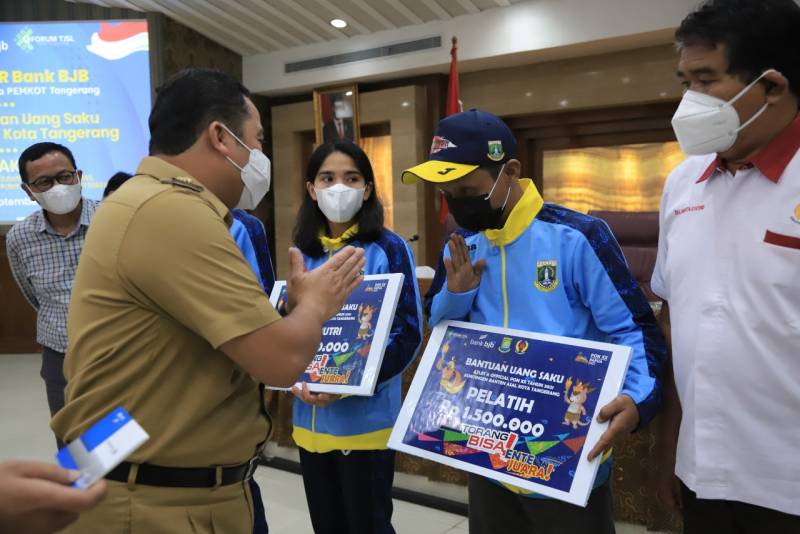 Sebagai dukungan Pemerintah Kota (Pemkot) Tangerang bersama Bank BJB, 41 atlet Kota Tangerang menerima bantuan uang saku, untuk berlaga di Pekan Olahraga Nasional (PON) XX Papua. Penyerahan bantuan diberikan langsung Walikota Tangerang dan Kepala Kantor Wilayah 4 Banten Bank BJB, di ruang Akhlakul Karimah, Puspem Kota Tangerang, Senin (9/20/21).