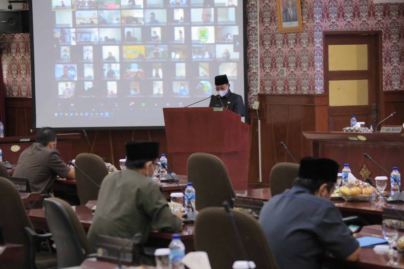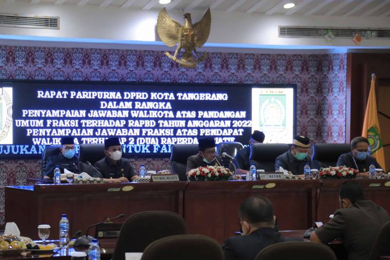 Wakil Wali Kota Tangerang H. Sachrudin menghadiri Rapat Paripurna DPRD Kota Tangerang dengan agenda Penyampaian Jawaban Wali Kota Tangerang mengenai Rancangan Peraturan Daerah (Raperda) APBD Tahun Anggaran 2022, Kamis (7/10/21).