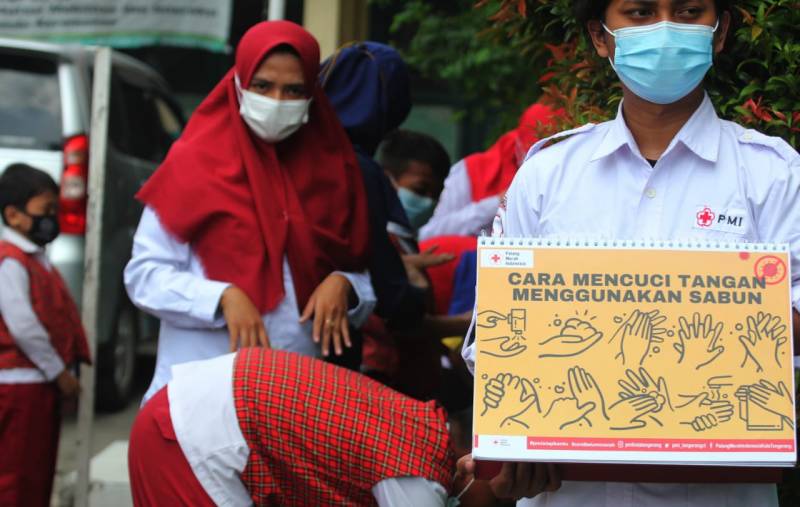 Ikut mempersiapkan Pembelajaran Tatap Muka (PTM) terbatas di tingkat SD. PMI Kota Tangerang melalui fasilitator PMR gencar menggelar sosialisasi Perilaku Hidup Bersih dan Sehat (PHBS) dan 5M, ke sejumlah SD Negeri, swasta hingga MI.