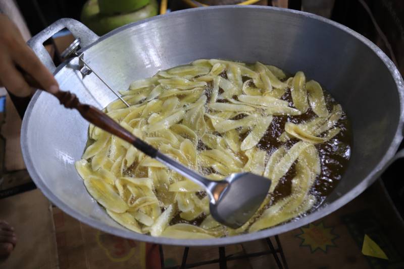 “Dulu sempat kerja namun berhenti dan coba-coba buka usaha. Awalnya usaha roti bakar, lalu ke nastar saat lebaran, dan terakhir ini keripik pisang. Ya, Alhamdulillah dari September tahun lalu sampai sekarang masih bertahan,” ujar Sarim setelah memperoduksi keripik pisang.