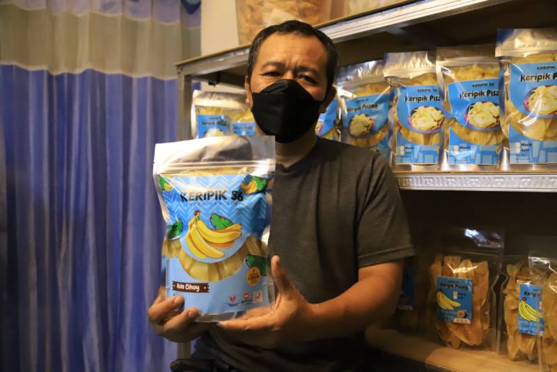 Salah satu pelaku usaha keripik pisang di Kota Tangerang yakni Sarim. Mantanan pegawai swasta ini rela banting setir menjadi wirausaha dan membuka keripik pisang dengan nama Keripik Pisang 56.