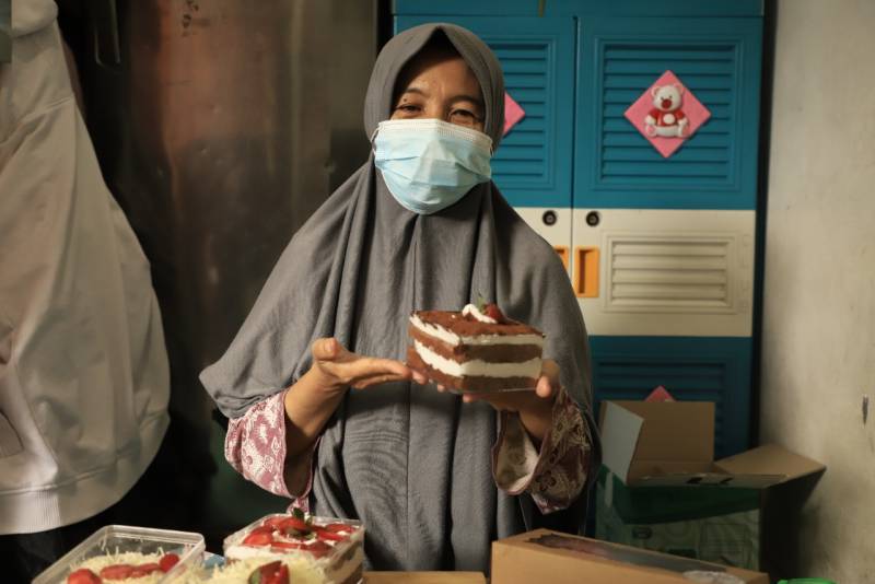 Peluang itulah yang dimanfaatkan, Chusnul, UMKM asal Kelurahan Cimone Jaya, yang kini dapat memproduksi ratusan box salad buah setiap bulannya. “Sebenarnya, bisnis ini saya rintis selama masuk pandemi covid-19, tak hanya salad buah apa saja saya produksi yang penting menghasilkan. Mulai dari salad buah, brownis lumer, desert box, kue basah hingga kue-kue ulang tahun saya siap layani,” papar Chusnul, Kamis (4/11/21).