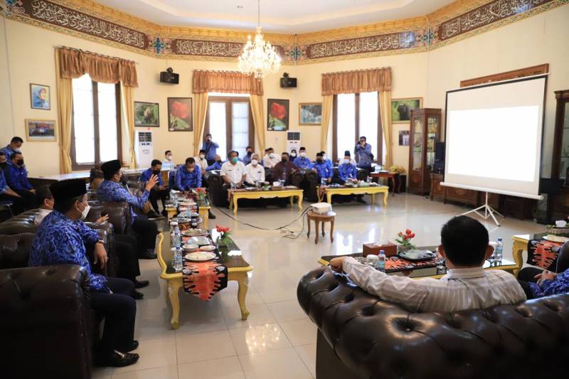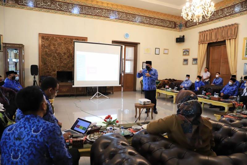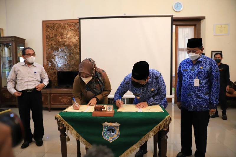 Pemerintah Kota Tangerang melakukan kunjungan balasan ke Pemerintah Kabupaten Pandeglang, di Pendopo Bupati Pandeglang, Rabu (10/11/21). Dalam kunjungan ini juga dilakukan penandatanganan kesepakatan bersama (MOU) terkait kerjasama pembangunan antar daerah.