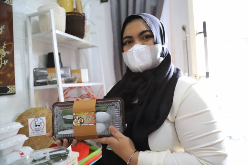 Pandemi Covid-19 mengharuskan ibu tiga anak ini banting setir yang tadinya sebagai penata rias, kini justru membuka usaha nasi bakar yang diberi nama Lanang’s yang turut masuk dalam Komunitas UMKM Cup Bestari.