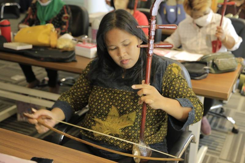 Selama tiga hari berlangsung, kegiatan pelatihan dimulai dengan pengenalan sejarah alat musik tehyan, mengenal organologi, hingga akhirnya peserta dapat memainkan dua buah lagu.