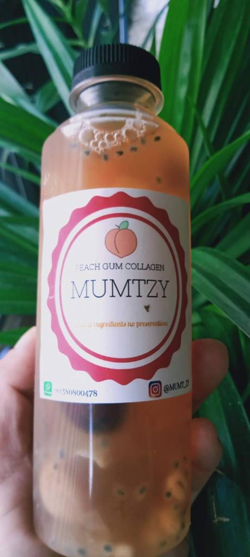 “Peach Gum Collagen Dessert saya jual Rp25 ribu per botolnya. Seminggu maksimal dua kali minum, menjaga kulit tetap sehat, berat badan terjaga, bagus untuk peredaran darah dan membersihkan paru,” kata Rossa.