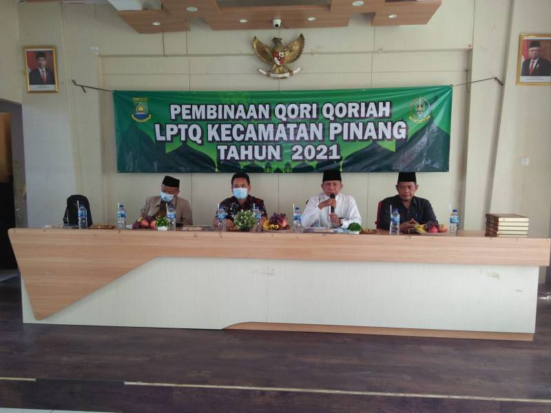 Lebih mapan dan matang menghadapi event-event besar tingkat kota, provinsi hingga nasional. LPTQ Kecamatan Pinang menggelar pembinaan qori qoriah, di kantor Kecamatan Pinang, Sabtu (27/11/21).
