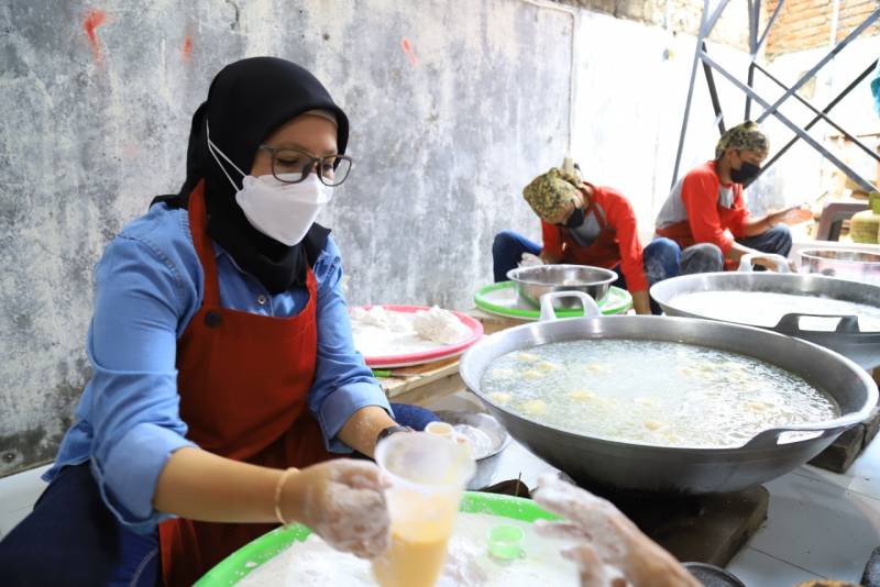 “Jadi kami mulai produksi jam 9 pagi, pegawai semuanya harus bersih menggunakan seragam, masker dan penutup kepala (yang tidak berjilbab) kemudian mereka wajib cuci tangan dan membersihkan perlengkapan yang digunakan,” paparnya.