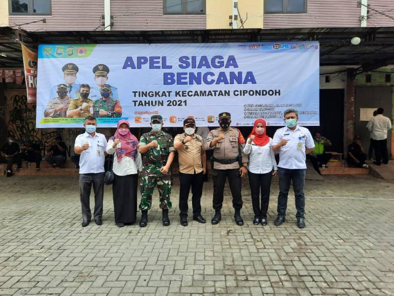 Personil gabungan dari berbagai unsur di Kecamatan Cipondoh, mengikuti apel gabungan kesiapsiagaan penanggulangan becana alam. Mulai dari jajaran kelurahan, polsek, koramil, BPBD, PUPR, Puskesmas, DLH, RT, RW, Pokdar, Bakorkonwil hingga satgas kebersihan, yang berlangsung di Parkiran Pasar Rubuh, Kelurahan Petir, Kecamatan Cipondoh, Rabu (1/12/12).