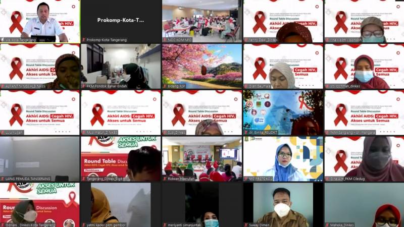 Dalam rangka memperingati Hari AIDS Se-Dunia Tahun 2021, Pemerintah Kota Tangerang melalui Dinas Kesehatan Kota Tangerang menggelar acara Round Table Discussion dengan mengusung tema "Akhiri AIDS: Cegah HIV, Akses Untuk Semua" secara daring dan luring yang diselenggarakan di Kantor Dinas Kesehatan Kota Tangerang, Rabu (1/12/21).