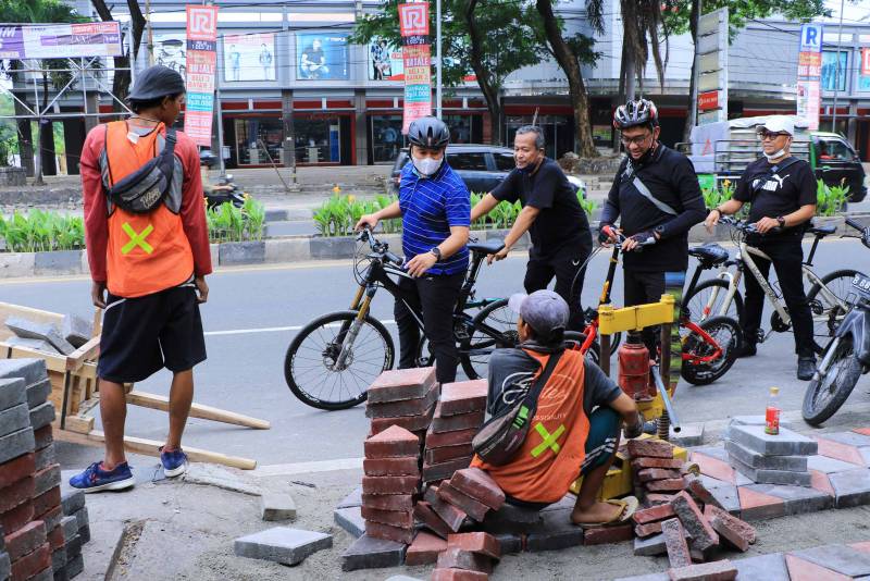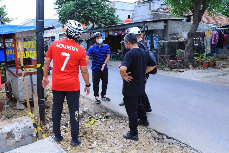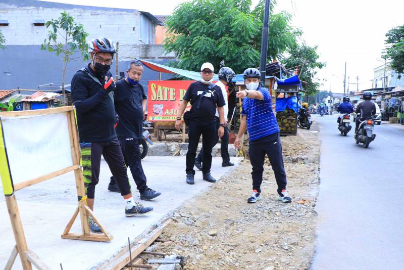 Sambil bersepeda di pagi hari Wali Kota Tangerang bersama Kepala Dinas PUPR Kota Tangerang Decky Priambodo berkeliling memantau beberapa fasilitas publik yang sedang dalam pengerjaan seperti perbaikan trotoar bagi pejalan kaki, pembangunan Looping di Jalan Galeong serta pembangunan turap di wilayah jembatan alamanda Kecamatan Periuk.