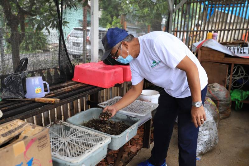 “Jadi prosesnya, sampah-sampah warga kami kumpulkan, lalu kami pilah mana yang organik dan non-organik. Sampah organik kami cacah lalu diolah oleh maggot. Kemudian, sampah plastik kami olah menjadi bio solar dengan menggunakan alat pyrolysis,” jelasnya.