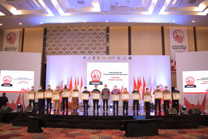 Selain hadir, Wali Kota juga sekaligus menerima piagam penghargaan langsung dari Kementerian Kominfo bersama beberapa Kepala Daerah lainnya dengan kategori kota/kabupaten terbaik untuk Dimensi Smart Living.