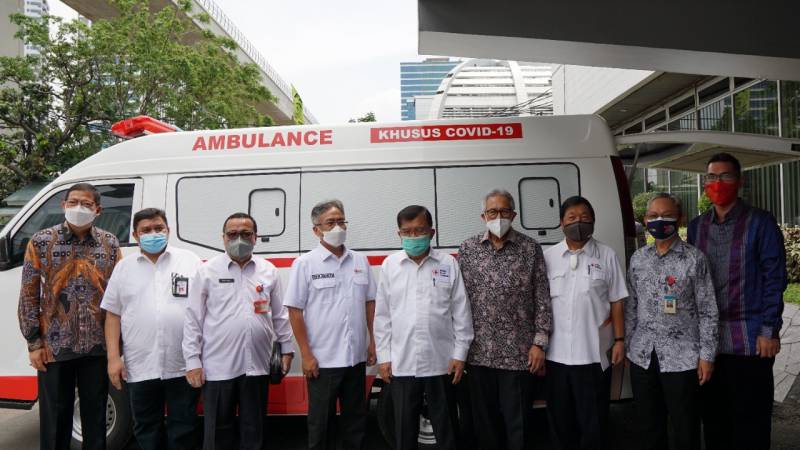 Palang Merah Indonesia hari ini, Selasa 14 Desember 2021, menerima bantuan 2 Unit ambulan Covid-19 yang diterima langsung oleh Ketua Umum PMI, Jusuf Kalla di Markas Pusat PMI. Bantuan ambulan ini diserahkan langsung oleh Presiden Direktur Gajah Tunggal, Sugeng Raharjo.