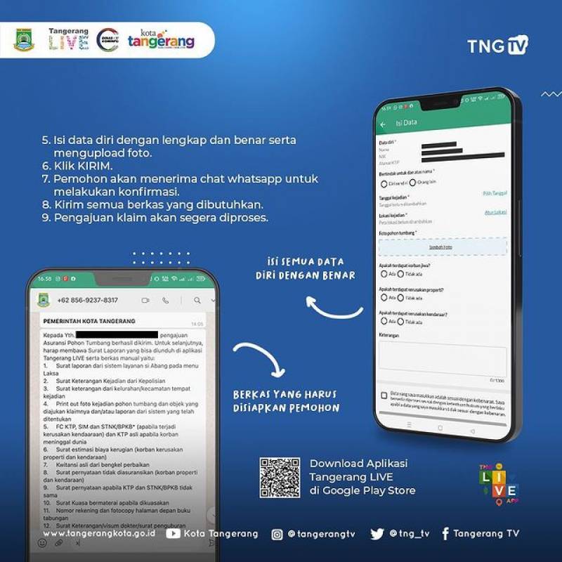 Buat kalian yang ingin mengajukan asuransi pohon tumbang, kalian bisa klaim melalui Aplikasi Tangerang LIVE lalu ikuti cara berikut ini yaa