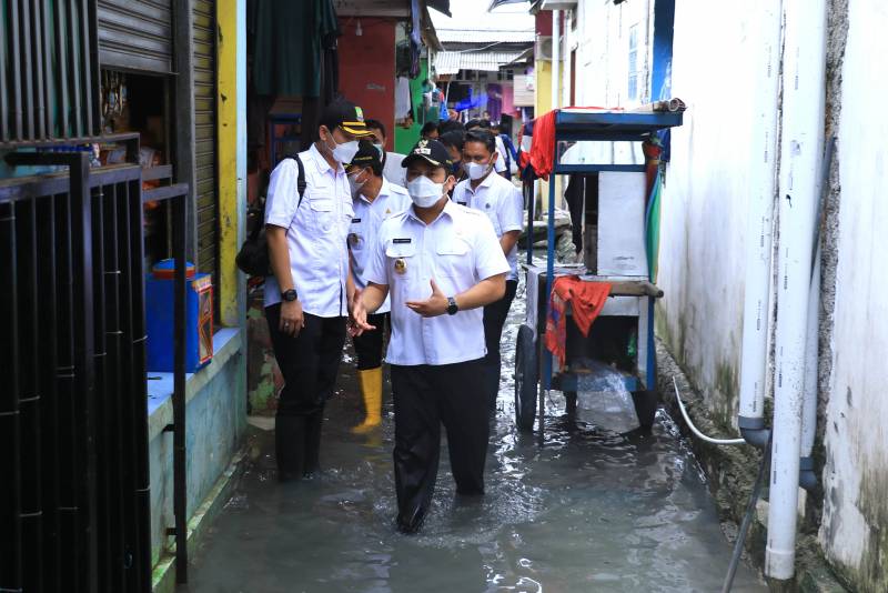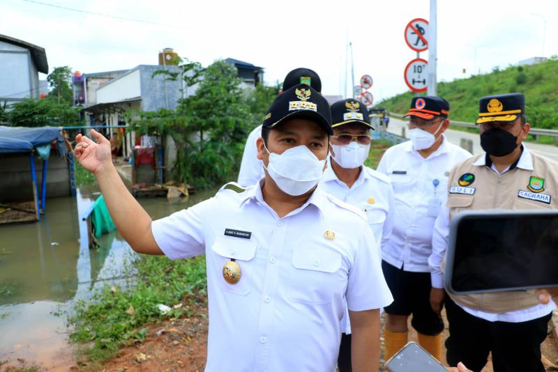 Rabu (19/1/2022), Wali Kota Tangerang H. Arief R. Wismansyah bersama wakilnya H. Sachrudin didampingi Kepala Dinas Pekerjaan Umum dan Tata Ruang Decky Priambodo serta Camat Benda Kota Tangerang Ahmad Suhaely meninjau titik lokasi di wilayah Kecamatan Benda yang mengalami banjir akibat dampak dari pembangunan Tol JORR II