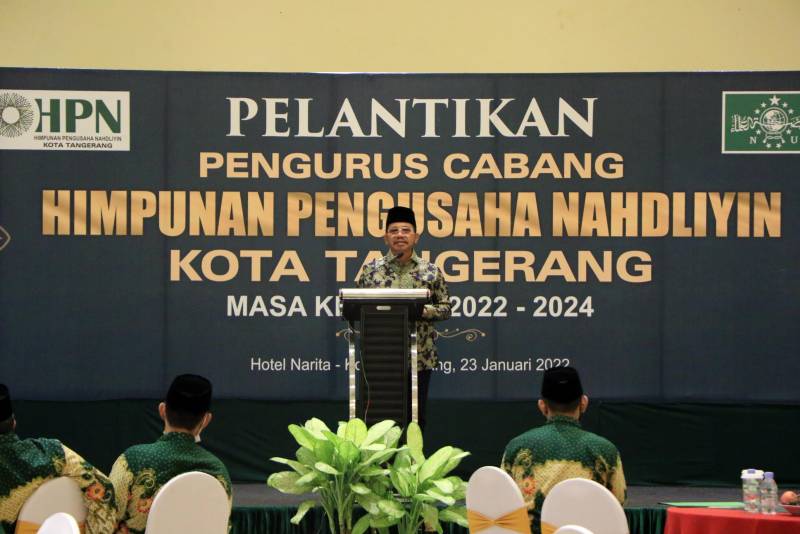 Wakil Wali Kota Tangerang H. Sachrudin menghadiri acara pelantikan Pengurus Cabang Himpunan Pengusaha Nahdliyin (PC HPN) Kota Tangerang periode 2022-2024.
