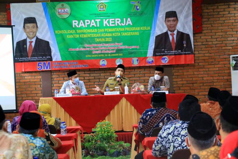 Wali Kota Tangerang H. Arief R. Wismansyah menghadiri rapat kerja Kantor Kementerian Agama Kota Tangerang dengan agenda Konsolidasi, Sinkronisasi dan Pemantapan Program Kerja Kantor Kementerian Agama Kota Tangerang Tahun 2022.
