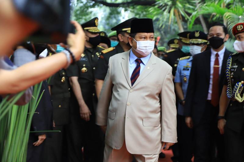 Menteri Pertahanan (Menhan) Prabowo Subianto memimpin upacara ziarah memperingati Hari Bakti Taruna ke-76, di Taman Makam Pahlawan (TMP) Taruna, Kota Tangerang, Rabu (26/1/22).