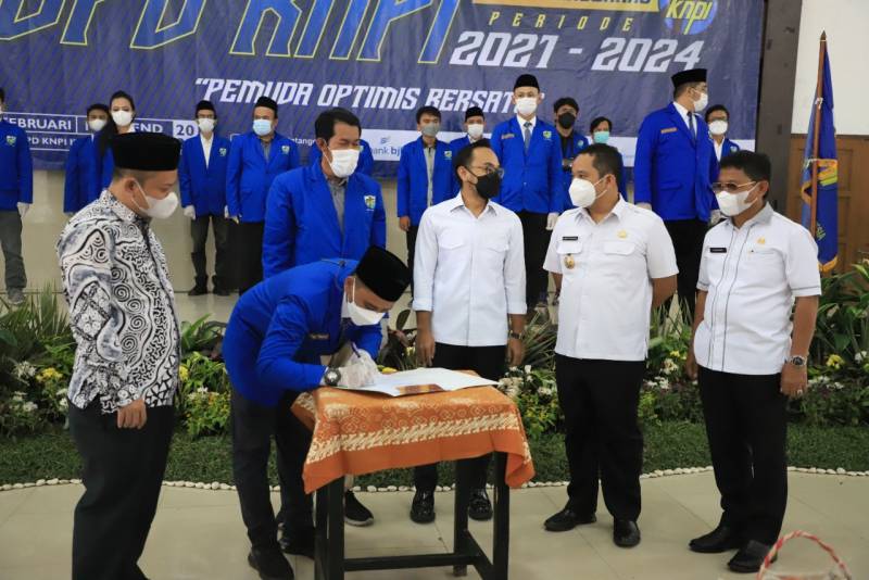 Pelantikan Dewan Pimpinan Daerah (DPD) Komite Nasional Pemuda Indonesia (KNPI) Kota Tangerang periode 2021-2024 berlangsung secara hybrid, Rabu, (9/2/22). Sebanyak 123 pengurus DPD KNPI Kota Tangerang dilantik.