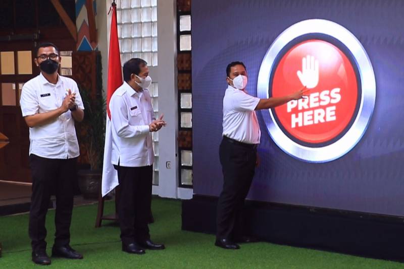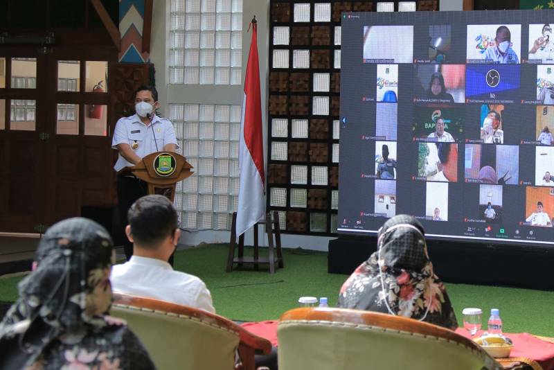 Wali Kota Tangerang Arief R. Wismansyah hadir bersama Plt. Kepala Dinas Ketenagakerjaan Rakhmansyah melaunching sekaligus membuka acara Virtual Job Fair edisi HUT Kota Tangerang yang berlangsung secara daring dan luring di Gedung Pusat Pemerintahan Kota Tangerang, Rabu (23/2).