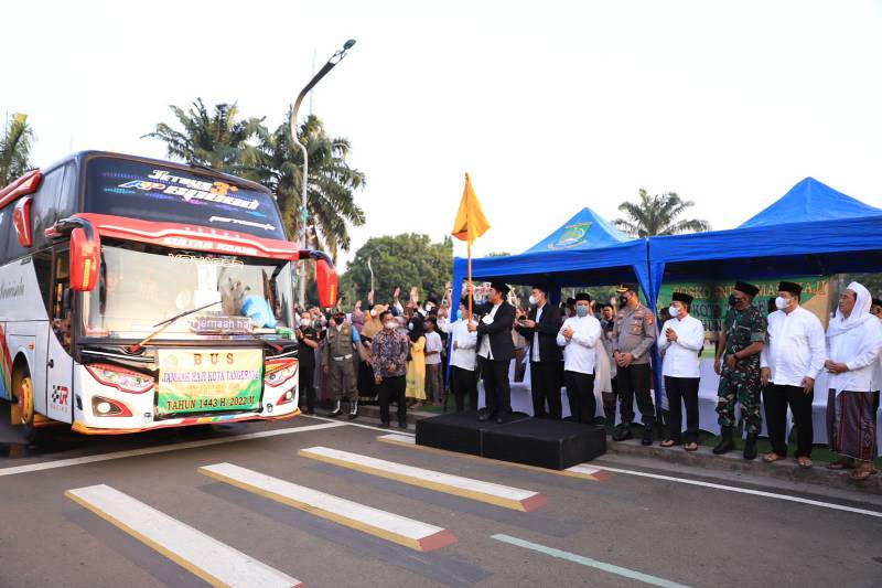 Sebanyak 389 jemaah haji Kota Tangerang tahun 2022 dilepas keberangkatannya pada Sabtu (04/06/22) di Masjid Raya Al-Azhom. Pelepasan dilakukan oleh Wali Kota Tangerang, Arief R. Wismanysah dan Penjabat (Pj) Gubernur Banten, Al Muktabar.