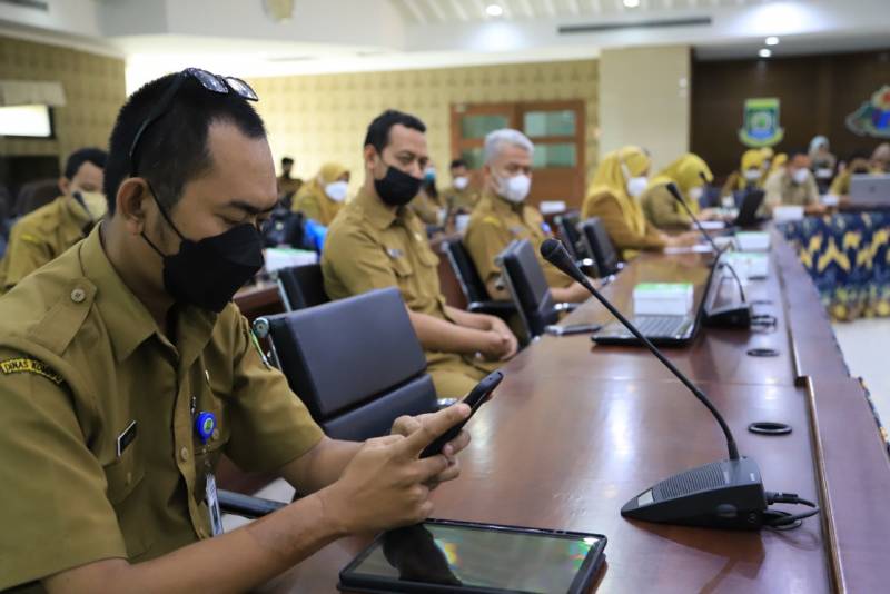 Mendukung program Satu Data Indonesia - Kota Tangerang, Dinas Komunikasi dan Informatika (Kominfo) melakukan Bimbingan Teknis (Bimtek) kepada 41 Perencana Organisasi Perangkat Daerah (OPD) Lingkup Pemkot Tangerang, di Ruang Akhlakul Karimah, Puspem Kota Tangerang, Selasa (21/06/22).