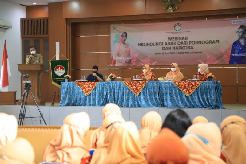Bentuk pencegahan dampak negatif dari penggunaaan internet pada anak, Dharma Wanita Persatuan (DWP) Kota Tangerang menggelar webinar dengan mengusung tema “Melindungi Anak dari Pornografi dan Narkoba”, yang digelar secara hybrid, di Gedung Nyimas Melati, Senin (27/6/22).