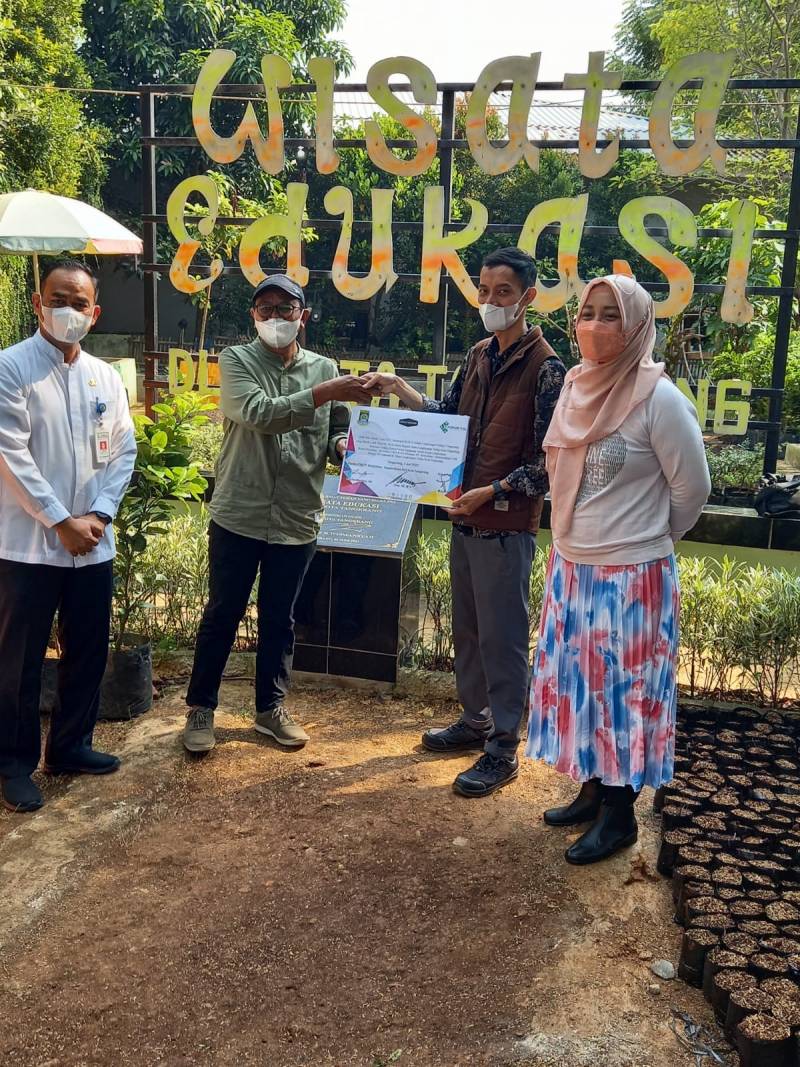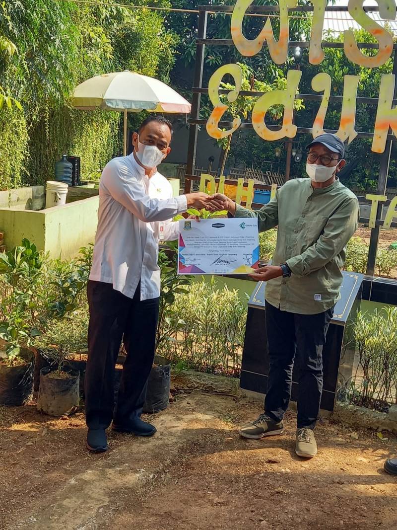 "Hari ini, DLH menerima bantuan 100 pohon jeruk bali dan ketapang kencana. Selanjutnya, akan dibagikan ke Kampung Iklim serta Sekolah Adiwiyata, yang merupakan binaan dari DLH Kota Tangerang," ungkap Tihar, usai menerima bantuan.