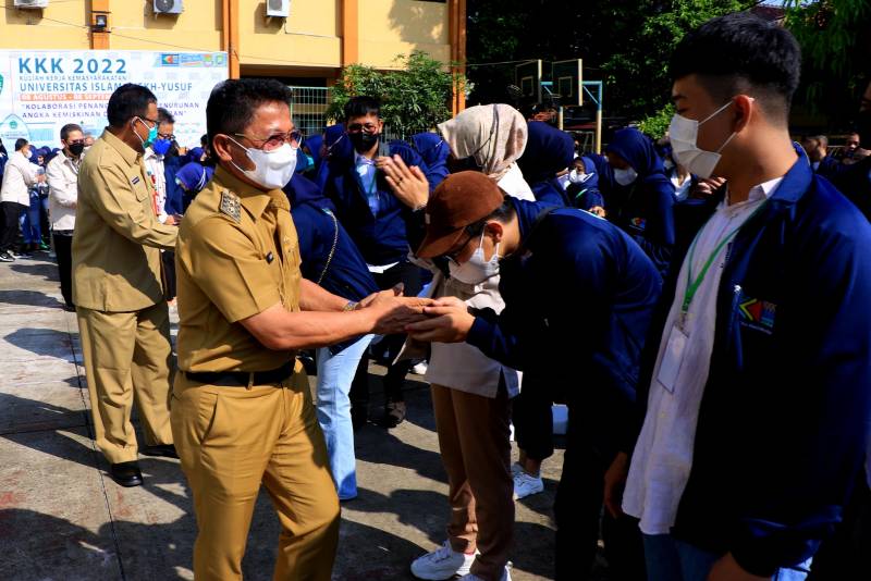 Wakil Wali Kota Tangerang H. Sachrudin melepas sebanyak 1.054 mahasiswa Universitas Islam Syekh Yusuf Tangerang untuk mengikuti program Kuliah Kerja Kemasyarakatan (KKK), bertempat di Gedung Unis Tangerang, Senin (8/8/22).