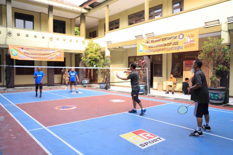 Memperingati hari jadi Republik Indonesia ke-77, Badan Penanggulangan Bencana Daerah (BPBD) Kota Tangerang menggelar turnamen BPBD Badminton Cup 2022 antara Organisasi Perangkat Daerah (OPD) di lingkup Pemerintah Kota (Pemkot) Tangerang, Senin (8/8/22).