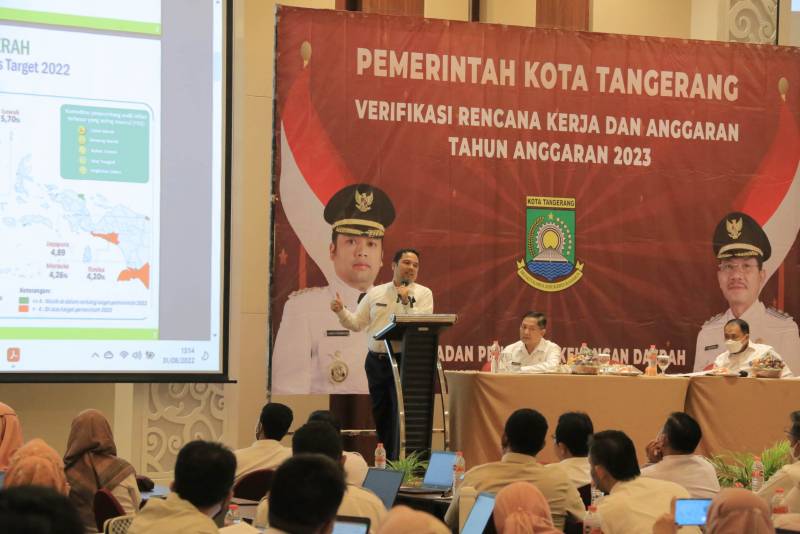 Wali Kota Tangerang H. Arief R. Wismansyah meminta jajaran pemerintah Kota Tangerang bisa mengantisipasi dampak inflasi melalui program-program yang inovatif. Hal itu disampaikan saat membuka kegiatan Verifikasi Rencana Kerja Anggaran SKPD Tahun 2023 yang bertempat di Hotel Atria, Kabupaten Tangerang, Rabu (31/8/22).