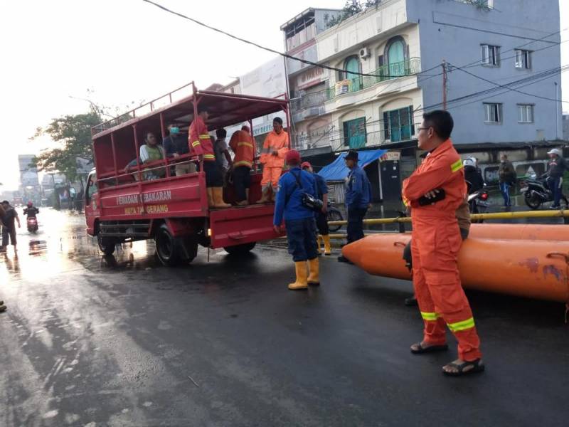 Lanjutnya, kondisi terkini dengan laporan lapangan Minggu pukul 07.00 WIB. Seluruh titik banjir dan genangan berangsur surut. Wilayah yang masih membutuhkan waktu untuk bergantian jalannya air ialah Kampung Gondrong, Pinang Griya Permai dan Komplek Duren Vila.