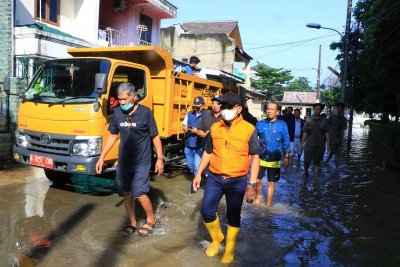 “Saya sudah koordinasikan agar PU bisa segera membuat pintu air agar meminimalisir limpasan air ke pemukiman,” jelas Wali Kota Tangerang H. Arief R. Wismansyah saat meninjau lokasi banjir di Komplek Cantiga bersama dengan Kepala Dinas PUPR Kota Tangerang Ruta Ireng W., dan Camat Cipondoh Rizal Ridhollah, Minggu (11/9).